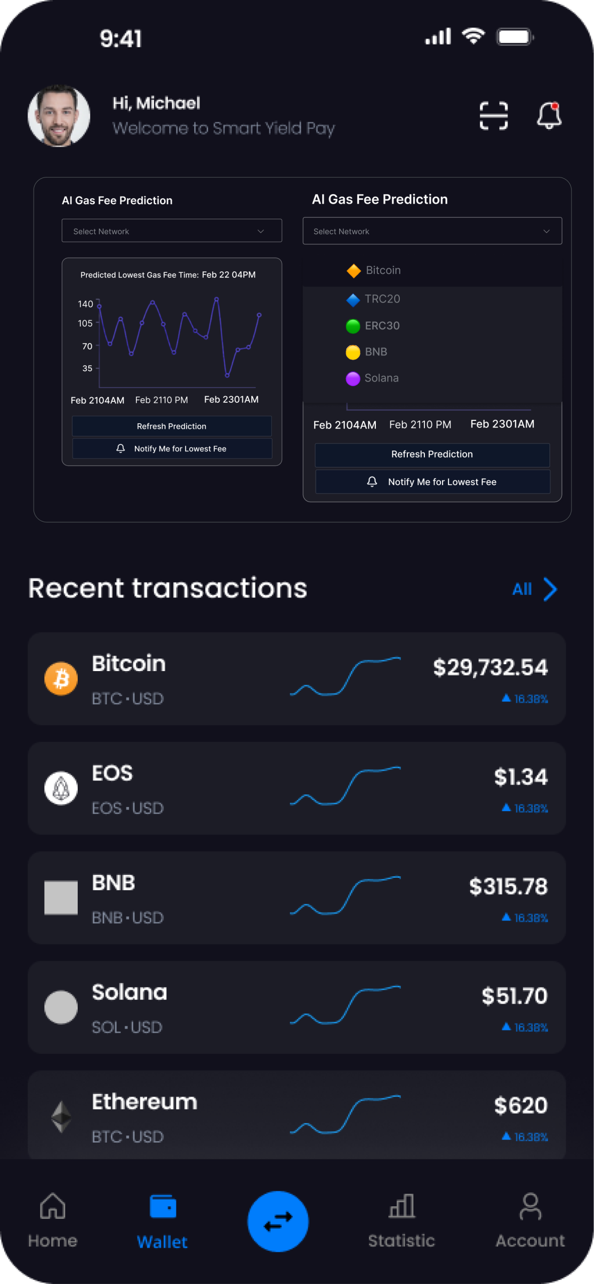 Predicts the lowest gas fees during the day using AI algorithms, helping users save on transaction costs.